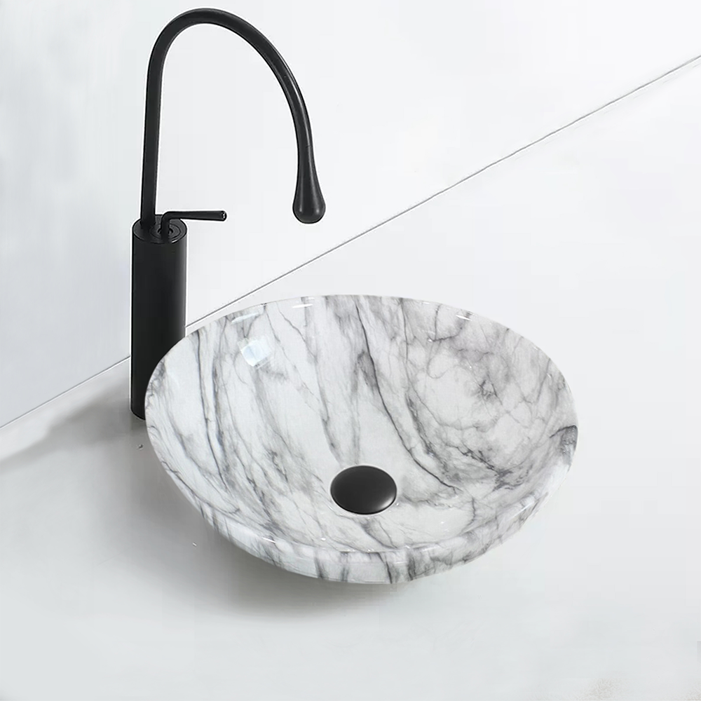 Eleva el lujo en tu baño con el lavamanos AquaSculpt, una obra maestra redonda de sobreponer que parece esculpida en mármol. Este lavamanos exuda elegancia y sofisticación, con su diseño redondo que agrega un toque de suavidad y armonía a cualquier espacio. La apariencia de mármol brinda un aire de opulencia y refinamiento, mientras que su construcción duradera garantiza una funcionalidad impecable. Haz una declaración de estilo con el lavamanos AquaSculpt y transforma tu baño en un santuario de belleza y confort.